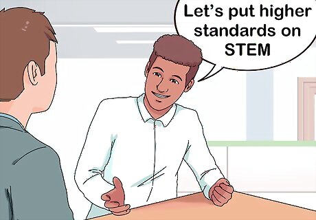 Push higher standards and support STEM programs to prepare students. Support higher standards in curriculum and also encourage programs like STEM that teach students about subject areas that are highly valued in the working world. This should help more students graduate high school, get into college, and become successful in the long run. STEM stands for science, technology, engineering, and math.