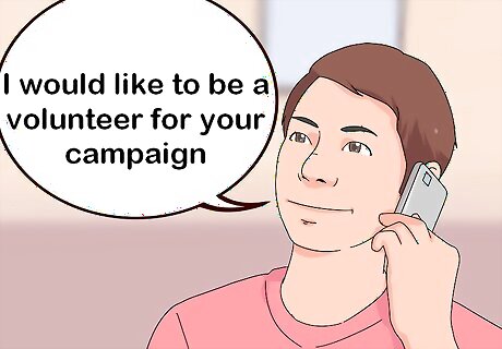Volunteer for a campaign. Political campaigns often rely heavily on volunteers to spread the word and seek out support. Contact your preferred candidate’s office via email or phone and ask how you can help. They’ll likely have something for you to do, such as stuff mailers or put up signs around town.