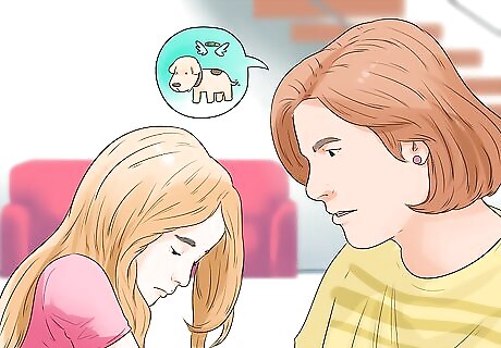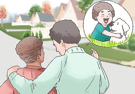 Share stories about your childhood pets. A good way to comfort your child is to tell them stories about your childhood pets. You might even include how you felt when they passed away. This will distract your child from their grief while teaching them that death is a normal part of life. Another option is to ask your child what their favorite story about their dog is. You can share yours as well.