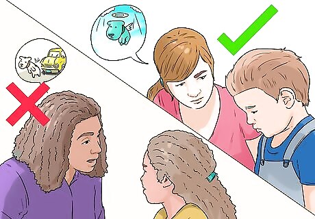 Tell your child that the dog has died. Use direct language. Tell your child that the dog is dead. Do not use euphemisms like “Bailey went to sleep” or “Macy is now in heaven.” Young children often take these very literally, and it may scare or confuse them. You can say, “We have very sad news. Daisy died today.” Avoid telling your child that the dog ran away. This may confuse them, and they may expect the dog to return.