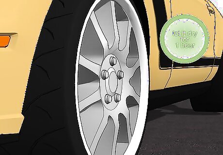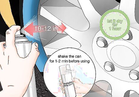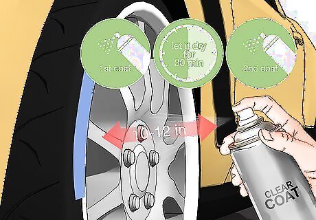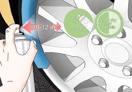 Use 2 layers of spray clear coat to seal and protect the paint. Spray clear coat is a clear finish that locks in a paint color and protects it from nicks and scratches. Take a can of spray clear coat and hold the nozzle about 8–10 inches (20–25 cm) away from the surface of the rim. Use short bursts and move the can back and forth in a sweeping motion to apply a thin and even layer. Wait 30 minutes so it can dry, then apply a second layer to seal in the paint. You can find spray clear coat at hardware stores and by ordering it online.