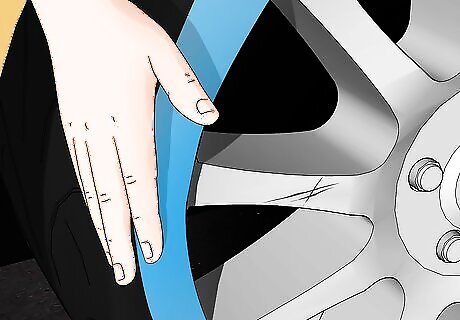 Cover the rim and tire around the scratch with masking tape. Take strips of masking tape and use them to tape off the area around the scratch. Leave about a ⁄4 inch (0.64 cm) border of untaped area around all of the sides of the scratch. Then, apply masking tape to the rest of the rim as well as the side of the tire so they’re protected from the paint and primer. Masking tape won’t leave behind a sticky residue when you remove it. You can also use painter’s tape to section off the scratched area.