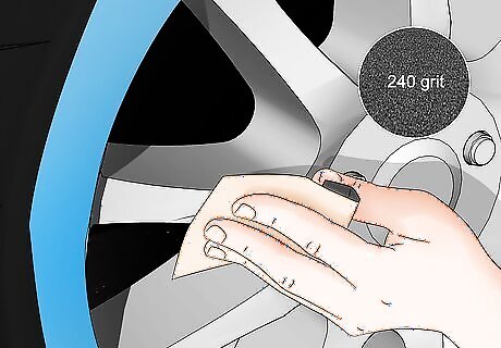 Use 240-grit sandpaper to lightly sand the scratch. Rub the scratched area in gentle, circular motions to remove the existing paint and clear coat. Sand all of the area in and around the scratch so it’s scuffed up enough for the filler, primer, and paint to adhere to it properly. Don’t use an electric sander so you don’t over-sand the rim.