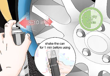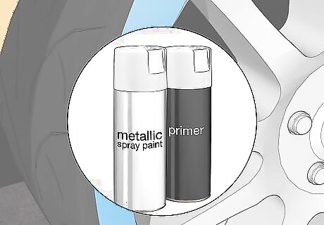 Choose a metallic spray paint and primer that matches your rim. Go with a metallic spray primer and spray paint and choose one that matches the color of your rim as closely as possible by comparing it to the paint on your rim. Look for a filling primer so it will fill any small imperfections on the surface of the rim and the putty. Use a picture of your rim or match the paint color to the paint on your rim for an even match. Look for metallic spray primer and spray paint at paint supply stores, hardware stores, or by ordering it online.