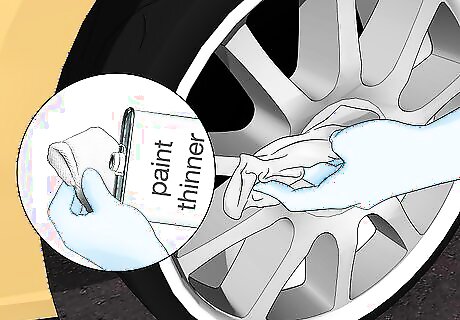 Apply paint thinner to a cloth and clean the area around the scratch. Take a can of paint thinner and hold a clean, dry cloth over the opening. Turn the can upside down to apply a small amount of the paint thinner to the cloth. Rub the scratched area with the paint thinner to thoroughly clean the area and remove any wax or silicone from the surface. You can find paint thinner at paint supply stores, at hardware stores, or by ordering it online.Warning: Paint thinner puts off noxious fumes and can burn your skin if it comes into contact with it. Put on rubber gloves and a breathing mask to avoid exposure.