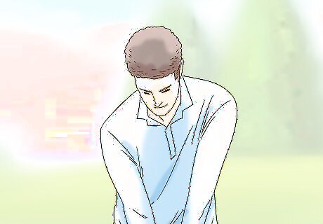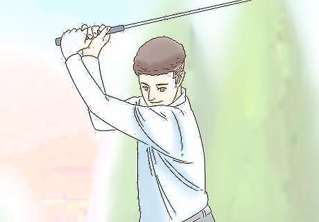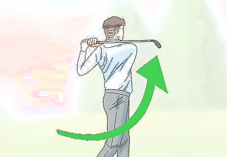 Keep your front arm straight as you start your backswing. Set the club directly behind the ball to line up your shot. Keep your eyes on the ball while you bring the club backward. Twist your upper body at the hips to start your backswing. Keep your front arm straight and bend your back arm so the club comes over your shoulder. Don’t move your feet during your backswing or else you could hit your ball in a different direction than you intend to. Make sure no one is behind or in front of you when you start your swing.
