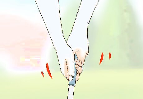 Grip the club with more pressure than you normally would. Hold your club so your dominant hand is on top of your non-dominant hand. Turn your dominant hand so your knuckles are on the backside of the club’s shaft. Hold the club with a firm amount of pressure so you have a solid grip.Tip: Strong grips may cause your shot to hook, or curve from right to left. Adjust your aim so it’s further to the right than normal.