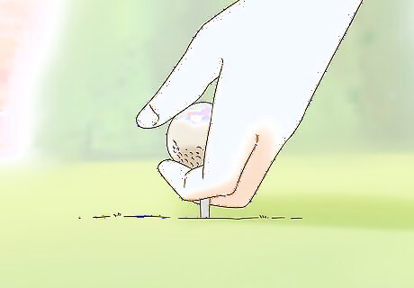 Tee the ball ⁄2 in (1.3 cm) off the ground if you’re driving. You can use a hybrid club at the tee box if you were planning on using a lower iron, such as a 3 or 4. Push your tee into the ground so only ⁄2 in (1.3 cm) is above the ground. Set your golf ball on top of the tee and readjust the angle of your tee if the ball rolls off. Teeing your ball helps you hit the ball in the center of the clubface when you’re driving. If there are other players down range from you, wait for them to finish the hole you’re on before starting your swing.Warning: Don’t tee your ball if it’s on the fairway or in the rough since you need to play the ball where it lies.