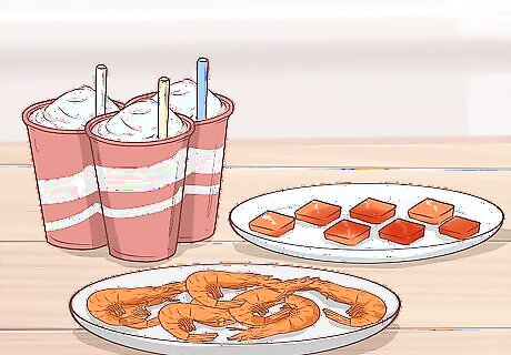 Provide refreshments for your guests. Make sure to plan for a variety of food and drink for your guests. This should include several appetizers or finger foods, a dessert, and beverages. Decide if you want to serve alcohol at your party, but even if you do be sure to include a non-alcoholic drink for those who wish to abstain from alcohol. Try serving some food items like mini sandwiches, deviled eggs, pigs in a blanket, or veggie platters with various dips. For the drinks, consider some kind of cola, water, punch, wine, and/or champagne.