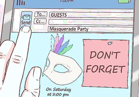 Send out email reminders. Send an email to all of your guests a week or so before the party to remind them about the masquerade party. You can include any pertinent information about bringing snacks or drinks, and even remind them that it is a masquerade party so everyone should come dressed accordingly. This is especially helpful for your guests who aren’t on Facebook and weren’t invited to the event via social media.