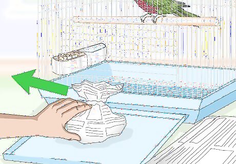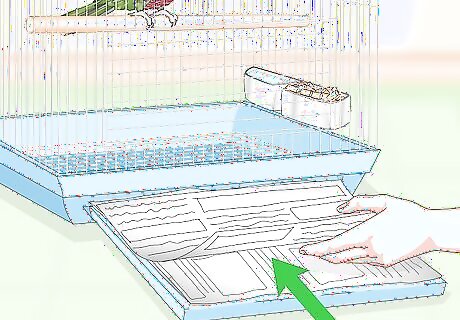 Line the bottom of the cage. Hawk-head parrots are messy. They will shed, drop food, and produce droppings. To help contain the mess and make it easier to clean up, use a cage liner. Newspaper or cage liner paper are good choices.