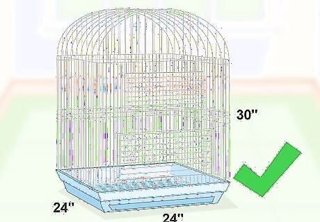 Choose the right cage. Hawk-head parrots need a cage that gives them enough room to fly around, sleep, eat, and play. Hawk-heads are generally around 13.75 inches (35 cm) tall, so you need a large bird cage. This means that your cage should be at least 24 in x 24 in by 30 in (61 cm x 61 cm x 76 cm). This is the minimum size of the cage. If you can buy a larger cage, go for it. Your parrot will probably enjoy the extra space to fly around in. Get a cage that is long rather than tall and narrow. Tall, narrow cages do not give birds the room to fly and flap their wings. A cage that is long and wide, however, will give your parrot some room to fly short distances and play.