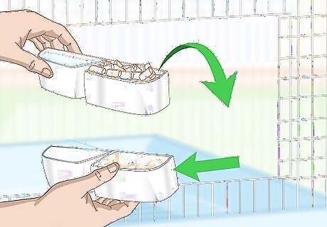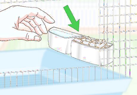 Change food and water daily. Since parrots are so messy, you need to change their food and water every day. You can either have two food and water dishes to replace the dirty ones, or you must take out the dishes and wash them every day. Provide fresh water and food each day. Wash the dirty dishes with hot, soapy water. Make sure to dry them completely. Damp food can lead to bacteria and mold in the cage.