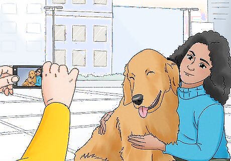 Have someone photograph you while hugging your dog. If you’re still unsure as to whether or not your dog really enjoys your affectionate overtures, ask a friend or family member to take a snapshot while you’re mid-embrace. You’ll be able to assess the expression on your dog’s face in a way that you can’t when you’ve got your arms wrapped around it. Some experts also recommend watching your dog get hugs from another close family member or friend. As they lean into a hug and lean back out again several times, you’ll see if your dog displays any anxious behaviors in consistent and explicit connection with hugs.