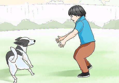 Give your dog easily understood gestures, such as belly-rubs or ear scratches. As you probably already know, dogs are very affectionate animals. They love to receive and give love through physical contact, just not necessarily in the same way that humans do. Instead of hugging, give your dog a belly rub, scratch their ears, or massage their shoulders and back. If you let your dog sleep on the bed, let them snuggle up at bedtime! Many dogs will be comfortable with close, sustained contact during sleep that they wouldn’t tolerate in other situations.