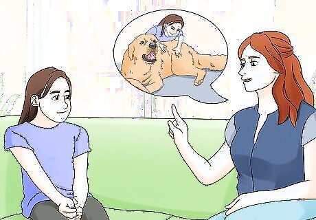 Discourage children from hugging your dog. Children are not good at discerning distress in dogs, even explicit threat signals such as snarling and bristling. Gently and firmly discourage children from giving your dog hugs. If your child persists in wanting to hug your dog, try educating them on other ways they can show their love. Teach them to tickle the dog’s tummy, rub its ears, and stroke its back.