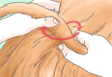 Wring out the cords. Use both hands to gently wring out the excess water from the cords. Take a few cords in your hands at a time and squeeze it gently, beginning at the top and working your way down to the bottom. Once you have finished wringing out the cords, you should repeat the process of separating the cords into tendrils with your fingers. Then let the dog air dry its coat the rest of the way.