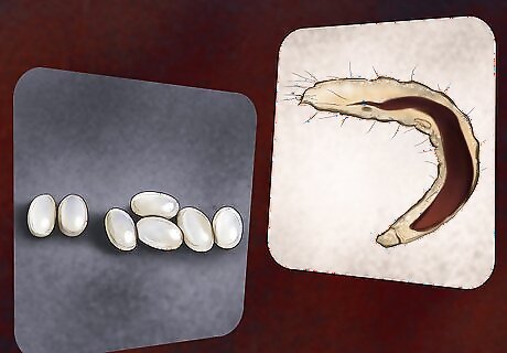 Look for flea eggs in areas of your home that your dog frequents. If your dog is infected with fleas, then eggs will end up in places other than just the dog's bed. The adult fleas will lay smooth, glistening white eggs, which are no longer than 1/32 inch, on the affected dog’s skin. These eggs will generally fall off the animal and infest the environment. In 2 to 5 days the eggs will hatch into dirty white larva that are about 3/16 inch (3-4 mm) long. They will crawl around and feed on the dried blood and excrement the adult fleas produce when taking their blood meal on the dog. Spotting flea eggs in your home will not always be easy. They are small and can blend into the environment. After feeding for up to two weeks, they will cocoon and develop into adults. Larva prefer certain environmental factors in order to develop into adults. This includes 75% relative humidity and temperatures between 70° to 90°F. At these ideal conditions they will emerge as adults in around 18 days. However, in cool temperatures the larva can remain in their cocoons for up to 12 months. The pressure from walking and/or vacuuming will make the larva emerge from cocoons.