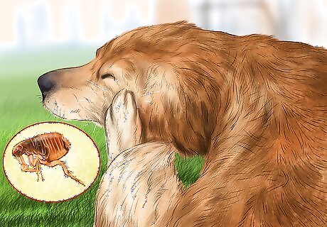 Look for behavioral signs of a flea infection. Is your dog scratching itself more than usual? Is it gnawing at its coat? These are signs that your dog might have fleas. Flea bites can cause itchiness on the dog’s skin. The bites can make small red bumps on the skin and continue to itch for some time. Some animals can actually be allergic to these bites, making the itching and redness more intense and widespread. Hair loss and skin infection can also occur.