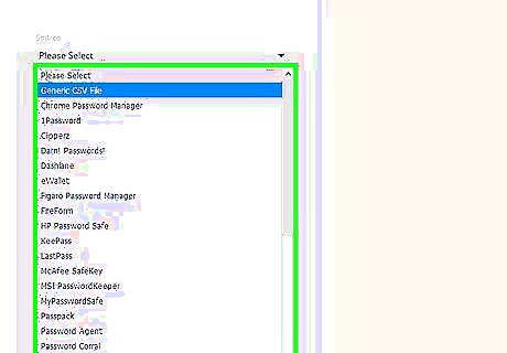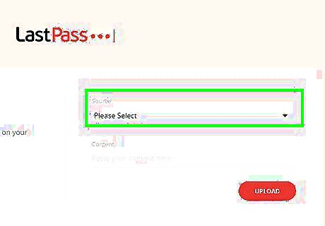 Select a password manager from the list that you want to import from. This web page shows all the password managers LastPass supports. If you don't see the password manager that you use in that list, you'll have to import your passwords manually.