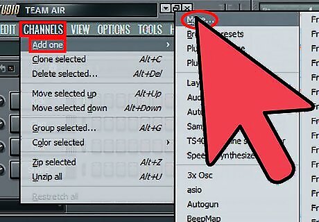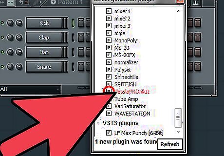 Open Fruity Loops. Now, depending on whether you are installing an Effect for your mixer (i.e. AutoTune) or Generator (i.e. minimoog synth program), there are different ways. This article assumes a generator is to be installed.
