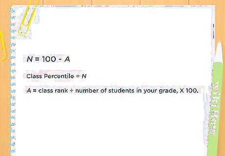 Recognize that there is only so much you can do to influence your class ranking. While your own planning, foresight, and hard work will play a large role in determining your class ranking, the ranking number is not completely under your control. Since you are being compared with, and ranked against, every other individual in your graduating class, their performances will also influence your class ranking. Since you cannot control the academic activity and success of your peers, this part of your class-rank determination is out of your control.