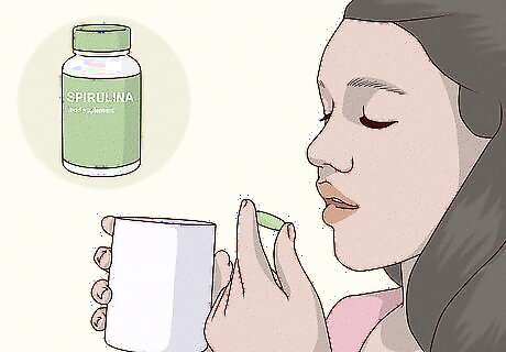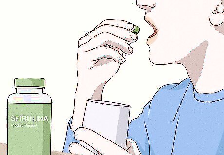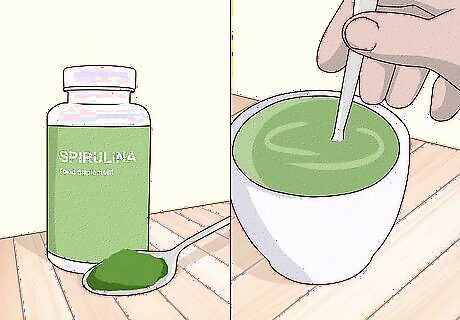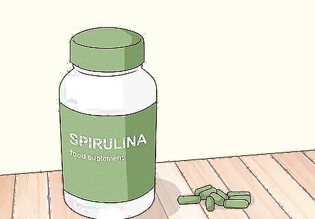 Take spirulina supplements instead of mixing it into your food. Spirulina also comes in tablet form as a dietary supplement. If you don’t like the flavor of the powder, then this is a good way to add spirulina to your diet without the strong taste.
