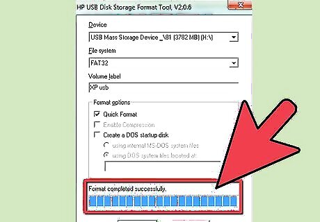 Format the USB drive. First, type H and an HP disk-storage format tool screen will open. Follow the instructions to format the USB drive. Make sure to check the Quick Format box. You can also format the USB drive using Windows FAT32 format if the program cannot find your USB stick.