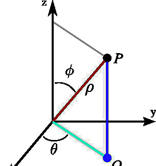 {\displaystyle (\rho ,\theta ,\phi ),}
