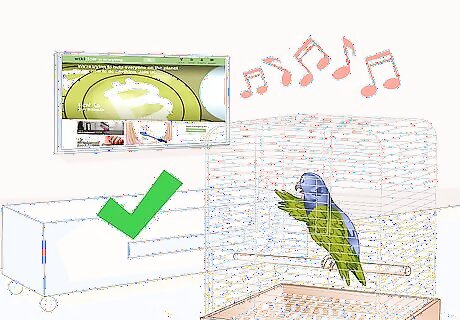 Leave the radio or TV on. Turning on the radio for your parrot can provide comforting noise and voices while you’re out. They may even be interested in the TV if they can see it. Just avoid nature channels since seeing large predators on TV could stress them out.