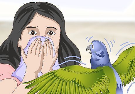Go on walks. Purchase a harness and leash for your parrot and take them on walks around the block. If this is too stressful for your bird, just try the backyard or your porch. Never leave them unattended outside, though, since they could become prey to another animal.