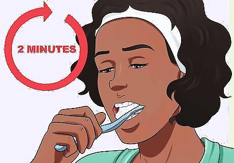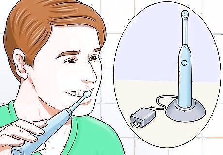 Use an electric toothbrush and toothpaste that contains fluoride. Electric toothbrushes are very effective at removing plaque from your teeth and keeping them clean. If you do not want to invest in an electric toothbrush, you should use a soft toothbrush that has round bristles. Make sure you completely understand how to brush correctly and practice the right moves so you can avoid any future problems. Ask your orthodontist to demonstrate for you. As well, you should make sure your toothpaste contains fluoride. In a recent study, toothpaste that contained fluoride was shown to reduce the development of white spots on teeth by 70%. Your orthodontist may also recommend a fluoride rinse that you can use once a day as part of your brushing routine.