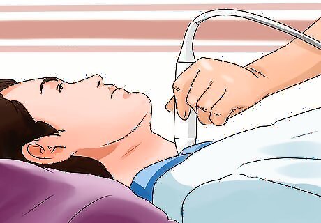 Consider a fine needle aspiration (FNA) biopsy if needed. Since it is difficult or even impossible to tell if a growth is cancerous using imaging along, your doctor may order a FNA biopsy to determine whether a thyroid nodule is benign (noncancerous) or malignant (cancerous). During this procedure, a small, thin needle attached to a syringe will be inserted into the thyroid nodule using ultrasound guidance. Samples of the cells in the nodule will be pulled into the syringe and then sent for analysis. The cells will be viewed under a microscope by a pathologist, a specialist in the study of diseases, who will determine if the cells are benign or malignant.