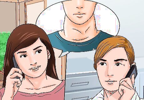 Check for symptoms of goiter. The main symptom of goiter is the goiter, the enlarged thyroid gland that you can feel. Most individuals with goiter have no other symptoms. The thyroid is a butterfly-shaped gland in the front portion of the neck, just below the Adam’s apple and just above the collarbone. If you can feel this gland, then you may have a goiter. If the goiter grows large enough, it may also cause the following symptoms: Swelling or tightness in the neck Breathing difficulties Swallowing difficulties Coughing Wheezing Hoarseness of voice