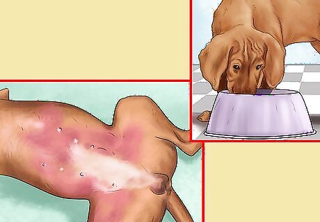 Look for any signs of rash or skin irritation. You should check if your dog has any irritated patches of skin on their coat or any signs of a rash. These could be symptoms of an allergy or an allergic reaction to the food they are eating as part of their diet. Many dogs will develop allergies to certain ingredients in their food over time. Switching their diet or adding a different food source to their diet can help to reduce their allergic reaction.
