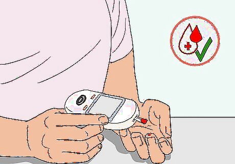 Monitor your blood glucose levels carefully. While using insulin, make sure to test your blood glucose levels on the schedule recommended by your doctor. You may only need to take your blood glucose levels once or twice per day, or you might need to do so more often. Be aware that many factors can impact your blood glucose levels. Some things that may affect your blood glucose levels include your: Food choices Activity level Injection location Timing of insulin injections Health and whether or not you’re sick Stress levels
