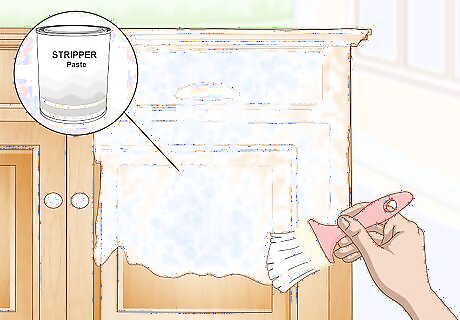 Remove the paste with a putty knife. Try inserting the knife into the paste. Begin removing it if it is soft enough for your knife to go through to the wood. Remove as much paste as possible. Soak a piece of medium-grade steel wool in the chemical stripper and use it to remove any stubborn bits of the paste.