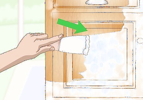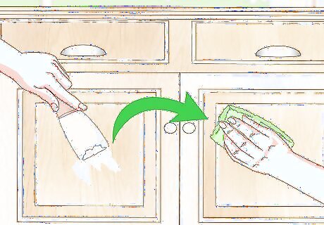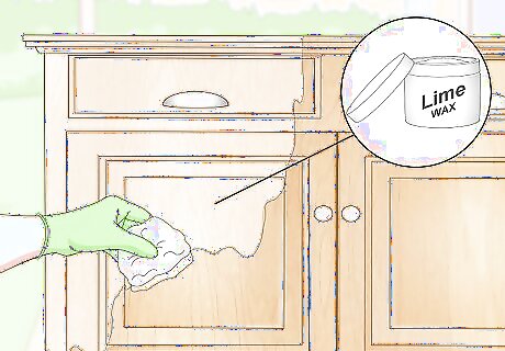 Wipe lime wax onto the wood using a cheesecloth. Purchase lime wax at your local hardware store and apply it to your oak wood item with a clean cloth. Wipe in the direction of the grain, pressing firmly and working the wax into it for a textured look. Be sure to cover the entire surface of the wood.