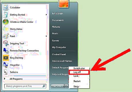 Select Log off from the submenu. Skip this step and move to the next one if you already logged off in the previous step.