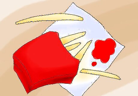 Cut out highly processed foods. Highly processed foods include bread, pastries, pasta, fast food, and frozen prepared meals. The reason for avoiding processed food is threefold: First, processed food is usually high in calories and low in nutrients. Second, processed carbohydrates usually have high glycemic indexes, which means they cause insulin spikes that can promote weight gain - not what you want when trying to lose body fat. Third, processed food usually does not contain much fiber, which can leave you feeling hungry.