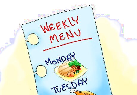 Plan a weekly cheat meal. Few people have the willpower to be perfect for the weeks or months it takes to lose the needed weight. Therefore it is advisable that you build into your diet a "cheat meal" once a week. A cheat meal does not mean that you get to eat an entire pizza and a carton of ice cream in one sitting. But it is an opportunity to eat something that is not on your diet. So have two slices of pizza and a reasonable bowl of ice cream. Have your cheat meal guilt free, after all it is a planned part of your diet, then immediately get back on your diet for the next meal. A regular and reasonable cheat meal may even help boost your metabolism .