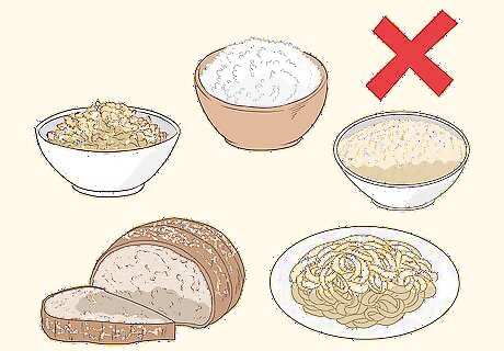 Eat more whole grains and eliminate refined carbohydrates. Refined carbohydrates, such as white bread, white pasta, and white rice, have less fiber than their whole grain counterparts. Switching to whole grain foods may help to alleviate some of your IBS symptoms and it can also aid weight loss by keeping you full for longer. Some whole grain foods you might include in your diet are: Brown rice Whole wheat pasta Whole wheat bread or rye bread Quinoa Barley OatsTip: If you have Celiac Disease or a gluten intolerance, then you’ll need to follow a gluten-free diet. Although a gluten-free diet will not lead to weight loss, it may help to reduce your IBS symptoms.