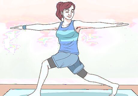 Try doing yoga once per week to relax and burn calories. Yoga may help to reduce IBS symptoms when you do it regularly and it’s also an effective way to build strength and flexibility. Try doing one 60 minute yoga session each week, or do 2 or 3 shorter yoga sessions per week. Look into classes in your area. If you have a yoga studio in your area, they may offer classes for beginners. You can also do yoga by following along with a video online.