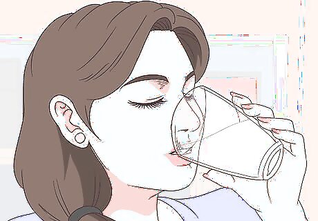 Drink water with your meals and throughout the day. Water helps to keep you hydrated and it may also help to promote weight loss. Start drinking water instead of sodas, juice, or other high-calorie beverages. Also, try to avoid beverages that contain caffeine, such as coffee, tea, and energy drinks, since these may make IBS symptoms worse. Carry a reusable water bottle with you during the day and drink water whenever you feel thirsty. Then, fill it up whenever it’s empty.Tip: If you’re not a fan of plain water, add flavor to your water with a lemon or lime wedge, a few berries, or a slice of melon or cucumber.
