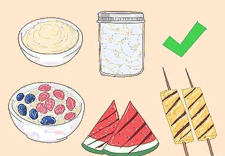 Eat cooked fruits rather than raw fruits. Some people with IBS find that raw fruits intensify their IBS symptoms, so you might want to avoid raw fruits. However, fruit can be a great low-calorie snack to aid in weight loss, so you might consider including cooked fruits in your diet. Some good options include: Applesauce Canned pears, apples, or peaches in water or juice Blueberries, raspberries, or strawberries cooked into oatmeal Grilled fruit slices, such as pineapple, mango, or watermelon