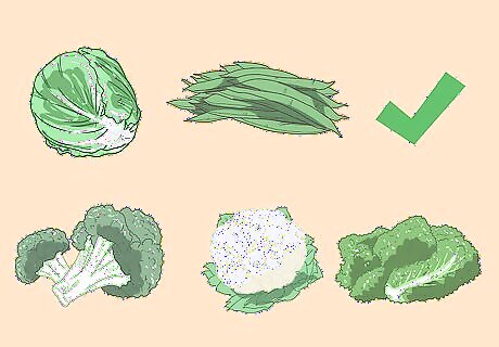 Include vegetables, but steer clear of gas-producing ones. Vegetables are important to include when you’re dieting since they provide fiber, nutrients, and they are often low in calories. However, some vegetables can aggravate IBS. Eat vegetables with every meal, but limit or avoid your intake of: Cabbage Beans Broccoli Kale Cauliflower