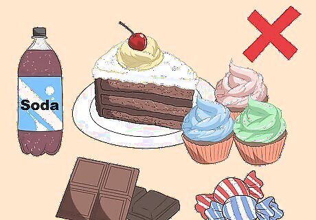 Cut out foods that contain added sugars. Sugar increases the calorie content of food and beverages and it may also cause your IBS symptoms to flare up. Avoid foods that have sugar added to them by checking the ingredients and nutrition information. If sugar has been added to something, it will appear in the ingredients list. Foods that contain added sugars often include: Sodas Candy Sweetened breakfast cereals Baked goods Crackers