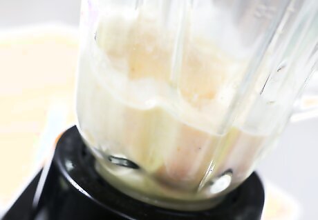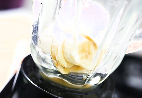 Measure and pour the ingredients into a blender. You might want to break up or cut the banana into slices so it will be easier to mix.