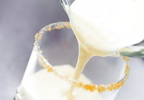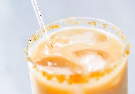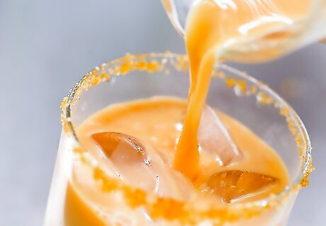 Prepare the glass. Dip the rim of the glass in a small saucer of rum, just to wet it. Thoroughly coat the rim in another small saucer of brown sugar.