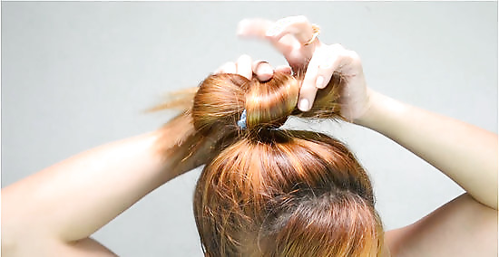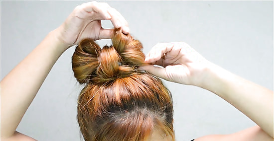 Create the center strand. Take the tail end from your ponytail and wrap it around the space between the two loops. Tuck the ends under one (or both) sides of the loop and pin in place.